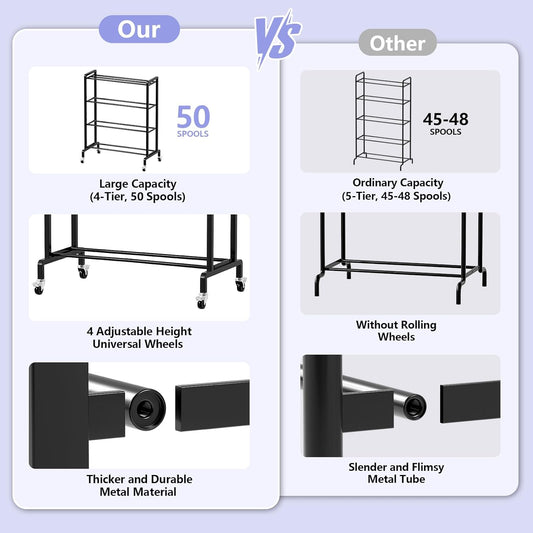 ANASTA 3D Printer Filament Storage Rack, Heavy Duty Filament Rack with Wheels, 4-Tier Metal Filament Holder Rolling Cart for Organization, 50 Spools Large Capacity Shelf for 3D Printing Home Studio