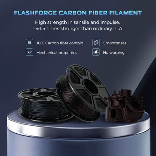 FLASHFORGE Carbon Fiber PLA Filament 1.75mm, Carbon Fiber Reinforced PLA 3D Printer Filament, 1KG Spool Dimensional Accuracy +/- 0.02mm, High Strength & High Abrasion-Resistance (PLA-CF Black)