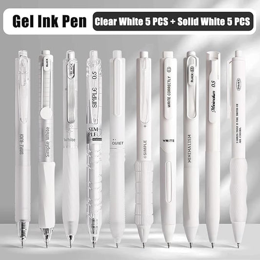 10 Count Pastel Gel Ink Pen Set,Cute Note Taking 0.5mm Fine Point Retractable 10 Count Black Ink Pens with for Writing, Journaling, School, Office (White)