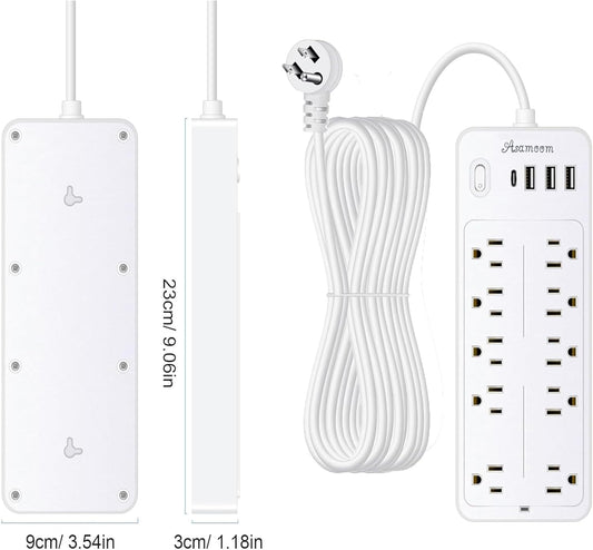 25 FT Power Strip with Surge Protection 1625W/13A, 14 Outlets and 4 USB Ports (1 USB-C), 16AWG, 1700J Flat Plug, White, ETL Listed