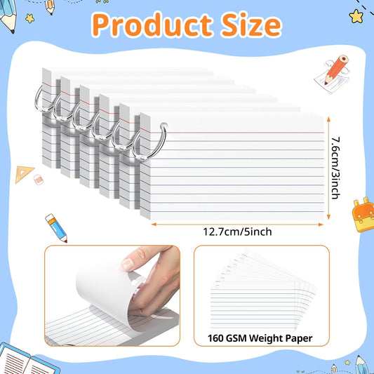 Index Cards 3x5 Inches, 300 PCS, White Flash Cards With Ring, Punched Lined Study Card Ruled Flashcards Notecards, Ruled Front And Blank Back, Note Card for School, College And Home