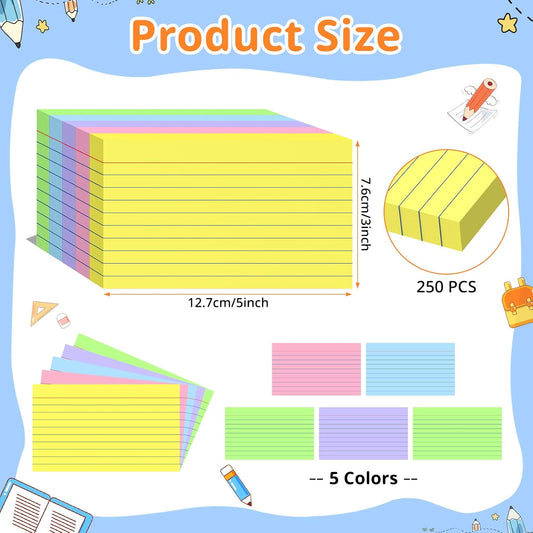 Index Cards 3x5 Inch, 250sheets, Flash Cards,Ruled Lined Colored Note Cards Paper For Studying, Schools Supplies, College, Office And Home Organization, Note Taking Supplies