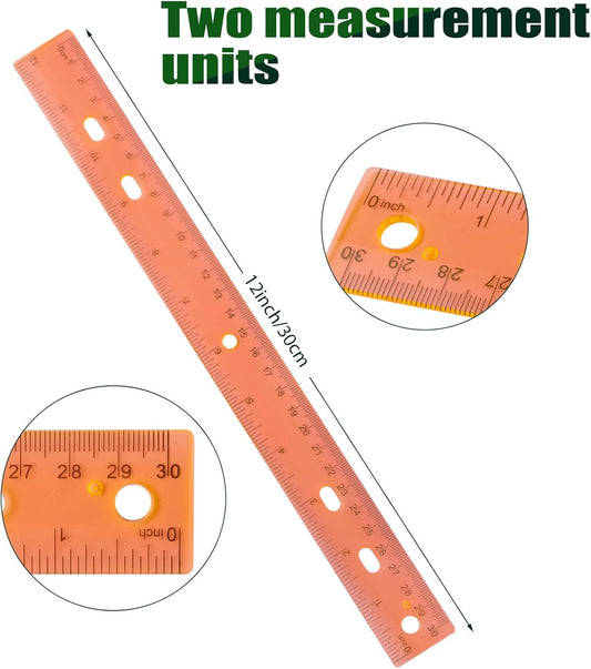28 Pack Plastic Ruler 12 Inch Transparent Rulers - Metric Bulk for Kids School Office Classroom, Orange