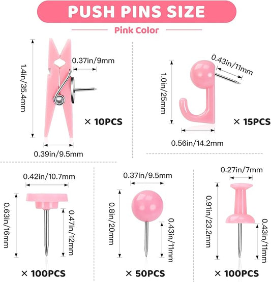 275pcs Pink Push Pins,5 Style Thumb Tacks, Decorative Push Pins, Cute Thumb Tacks for Bulletin Boards, Wall, Maps, Cork Board, Pink Office Supplies, Office Decor