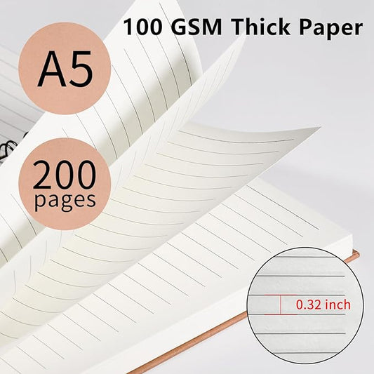 3 Pack Spiral Notebooks 5.83"x8.27", 200 Pages/100 Sheets A5 Spiral Notebook Journal, with Kraft Hard Cover, Ruled Lined Paper, for Work, School, College Students, Gifts