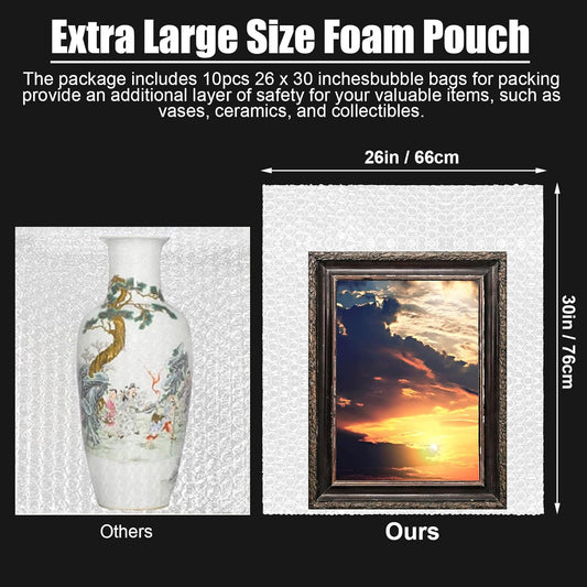 10 Pack 26 * 30 Inch Extra Large Bubble Pouches Clear Bubble Pouch Wrap Bags for Packing Shockproof Cushioning Wrap Bag for Shipping Moving Fragile Dishes China Plates Painting Fragile Items