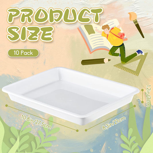10 Pack Plastic Art Trays,Activity Crafts Tray,Organizer Tray,Serving Tray for Home,School,Kids,DIY Projects,Painting,Beads (White)