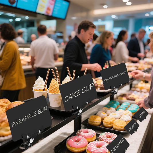 10 Pack Mini Plastic Chalkboard Sign with Clip, Double Sided Rotating Reuse Price Signs for Business Retail Food Clothing Rack Shelf Basket, Clip on Sign Holder (Black)