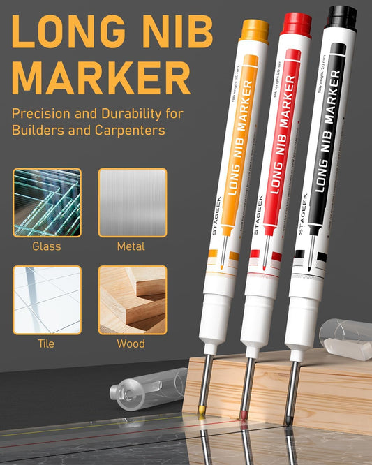 34 Pack Carpenter Pencil Set with Sharpener, Mechanical Carpenter Pencils with Deep Hole Long-Nib Marker Pens, Carbide Scribe Tool & Construction Pencils for Architect Woodworking with Case