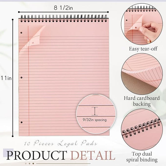 10 Packs 8.5" x 11" Top Spiral Notebook with 3 Hole Punched Legal Pads College Ruled Notepad 50 Sheets Hard Cardboard Paper Wirebound Notepad for Office School Business (Pink,Blue,Purple)
