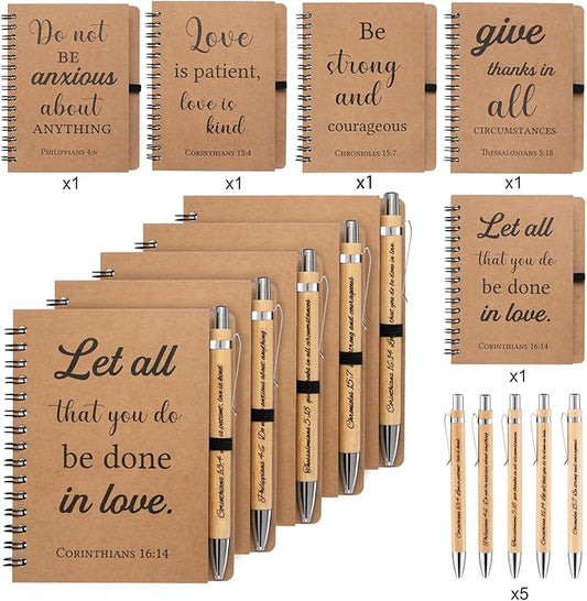10 Pcs/5 Set of Christian Gifts Spiral Notebooks Bulk Journals with Christian Pens Prayer Journal Christian Journal for Women and Men, Perfect Home Gifts