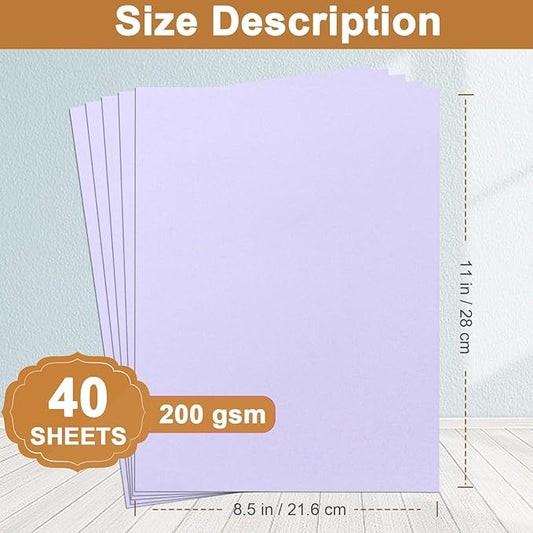 40 Sheets Light Purple Cardstock 8.5 x 11 Printer Paper, 75lb Heavyweight Paper Card Stock for Wedding, School Crafting, Invitations, Making Cards, Certificates