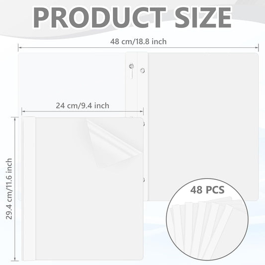 48 Pack Plastic Report Covers with 3 Prongs Presentation Folders Bulk, 100 Sheet Capacity, Clear Front Report Covers for Presentation Document Paper School Office Supplies (White)