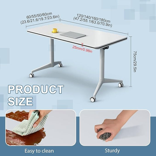 4Pack Conference Room Table, Folding Conference Table for Office Classroom, Mobile Training Tables with Casters Silent Wheels, Large Rectangular Convertible Modular Seminar Tables (L47.2in)