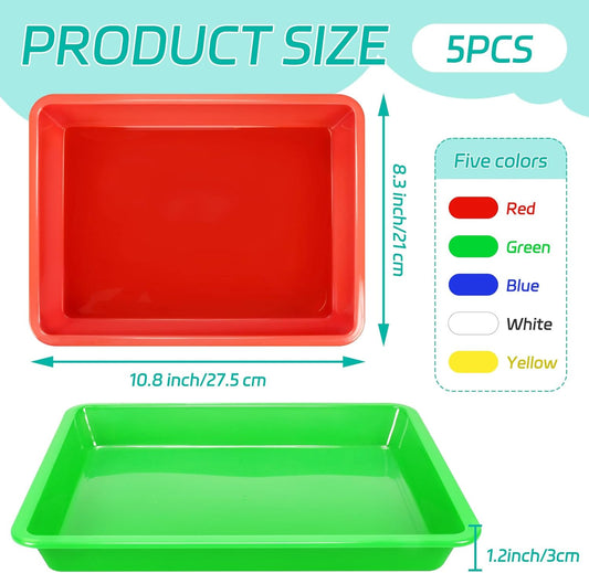 5 Pack Multicolor Plastic Art Trays - Activity Tray Crafts Organizer Tray Serving Tray for School Home Art and Crafts, DIY Projects, Painting, Beads, Organizing Supply