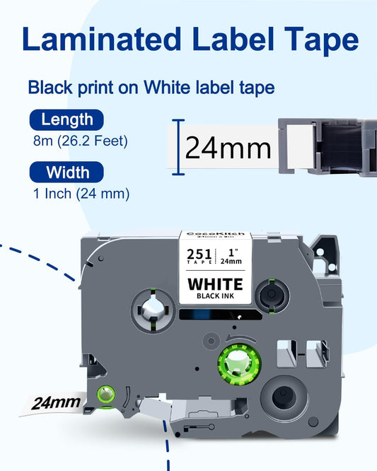 5-Pack TZe-251 TZ Tape 24mm 0.94 Laminated White Compatible for Brother P Touch Label Tape TZe 251 TZe251 TZ-251 for Ptouch PT-D600 PT-D610BT PT-D600VP PT-P710BT PT-P700 Label Maker, 1 Inch x 26.2 Ft