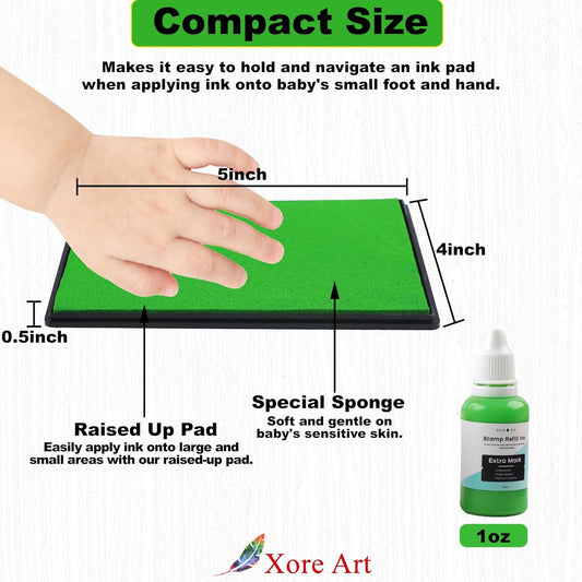 5"x4'' Large Ink Pad Washable Stamp Ink Pad for Baby Footprint Handprint with 30ml Premium Refill Ink (Light Green)