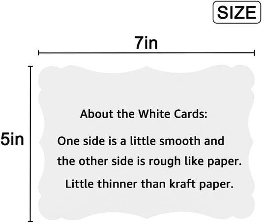 50 Pack Blank Kraft Cards Cardstock Thick Paper Brown Greeting Cards for DIY Gift Card Menus, Baby Shower and Wedding Invitations (White, 5x7IN)