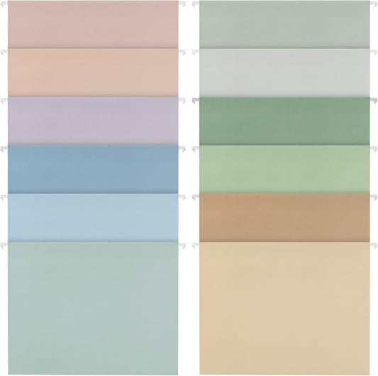 50pcs Decorative Hanging File Folders,Filing Cabinet, Letter Size with 1/5-Cut Adjustable Tab Durable 12 Color Assorted, 50 pcs Per Box,Cute,Color,Pink,Pastel