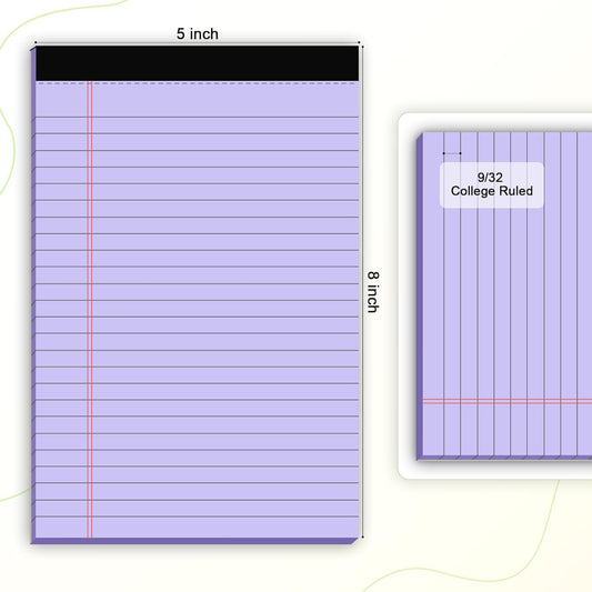 5pcs Colored Note Pads 5x8 College Ruled Small Legal Pads Paper Notepads 5 Pack Study Back Writing Pads 5 x 8 Paper Pads Perforated Narrow Ruled Pads of Paper 30 Sheets/Pack