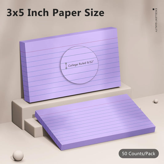 600 Count Index Cards 3 x 5 Inch Purple Lined Flash Cards Ideal for Studying and To-do-List, Portable Note Cards Taking for Students and Teachers, Flash Card Styled for Home, Office or School Use