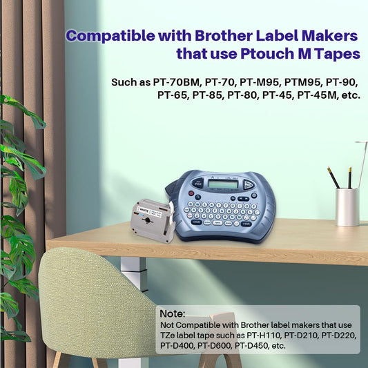 6X Replacement for M-k231s Brother Label Tape 12mm 0.47 M-K231s M Tape 12mm 0.47'' M231 MK231 M-231 White Work with Brother P Touch PT-65 PT-M95 PT-90 PT-70 PT-80 PT-70BM PT-45 Label Maker Refills