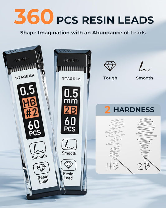 0.5mm Mechanical Pencil Set, 3PCS Metal Mechanical Pencils 0.5mm with 6 Tubes HB & 2B Lead Refills, Erasers, Weatherproof Artist Pencils with Case for Outdoor Writing Drafting Drawing