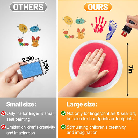 7" Large Ink Pads for Kids - Handprint Footprint Size Rainbow Stamps Pad, Safe & Washable Ink Pad for Fingerprint Painting Card Making Stamp Crafting Paper Wood Fabric Scrapbook Kids Birthday Gifts