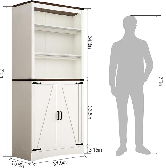 71H Tall Metal Storage Cabinet with 2 Doors and 5 Shelves,Farmhouse Storage Cabinet with Barn Doors,Pantry Storage for Home,Office,Dining Room,Kitchen,Bathroom(White)