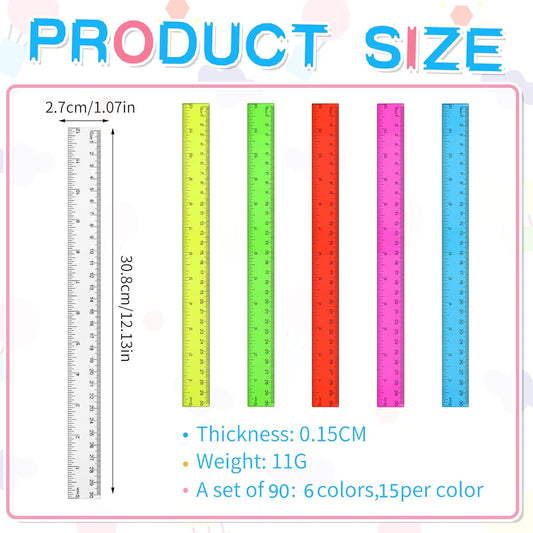 90 Pack Color Transparent Ruler Bulk 12 Inch Clear Plastic Rulers Kids Ruler with Centimeters and Inches Straight Measuring Drafting Tools for Classroom School Students Families Education
