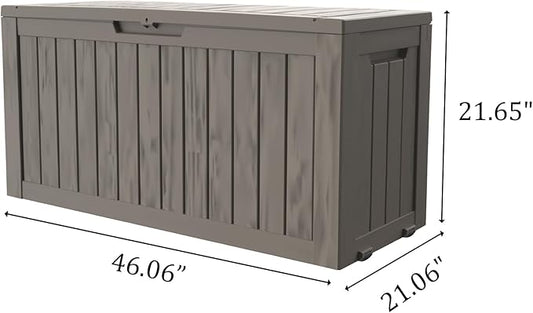 90 Gallon Lockable Resin Deck Box with Wheels, Waterproof & UV-Resistant Outdoor Storage Box for Outdoor Cushion Storage, Garden Tools & Pool Accessories Storage, Gray