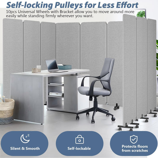 Acoustic Room Divider Privacy Panel with Wheels, 3 Panel Soundproof Room Divider (Aluminum Frame) for Room Partition, Folding Room Dividers Separation Office Cubicle Wall Sound Proof Partition Divider