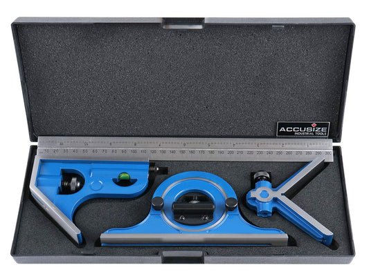 Accusize Industrial Tools Combination Square Set, 12''/300mm, 4 Pcs/Set, 0000-8108