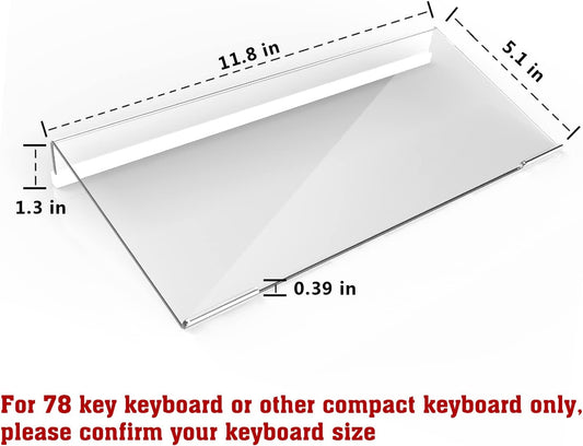 Acrylic Tilted Computer Keyboard Stand for Compact Keyboard, 78 Keys Keyboard, with White Silicone Strip, 11.8 Inch Width