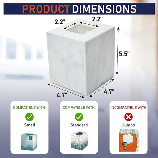 Acrylic Tissue Box Holder, Square Dispenser for Facial Tissues, Napkins, and Dryer Sheets. Perfect for Bathrooms, Desks, Countertops, Vanities, Bedrooms, and Nightstands (Square, Marble)