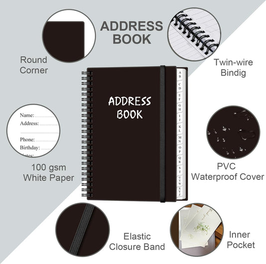 Address Book with Alphabetical Tabs - A5 Telephone & Address Book with Address Contacts, Special Date, Phone, Birthday & Internet Login Password for Home and Office, 6.2" x 8.5", Black