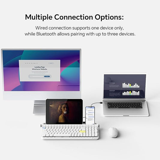 ACTTO B705 Retro Typewriter Keyboard Bluetooth,Vintage Mechanical Keyboard with Tablet Stand,LED Backlight 100 Keys Gaming Keyboard for Windows/macos/iOS/Android,Blue Switch (White)