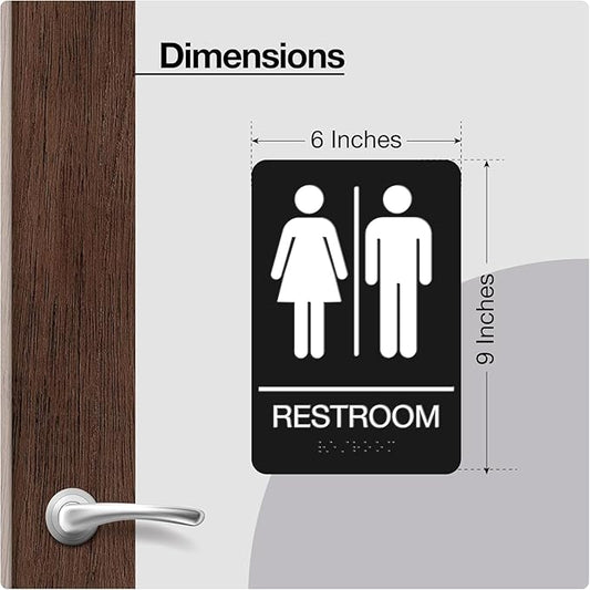 ADA Braille Unisex Restroom Signs for Business with Double Sided 3M Tape - ABS Plastic Gender Neutral Bathroom Sign 9” x 6”- Pack of 10 for Offices and Restaurants