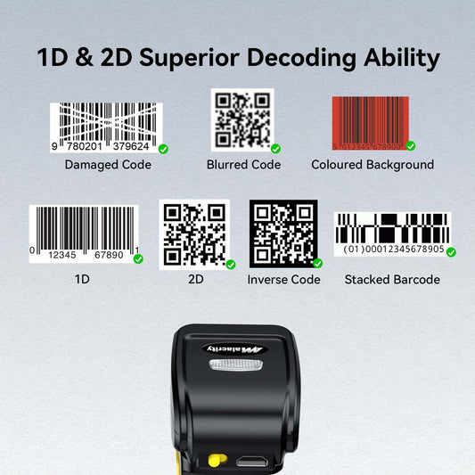 Alacrity Wearable 1D/2D Wireless Barcode Scanner,3-in-1 Mini Ring with Bluetooth,2.4GHz Wireless,and Wired USB Connectivity for PC,Laptop,Tablet,Phone