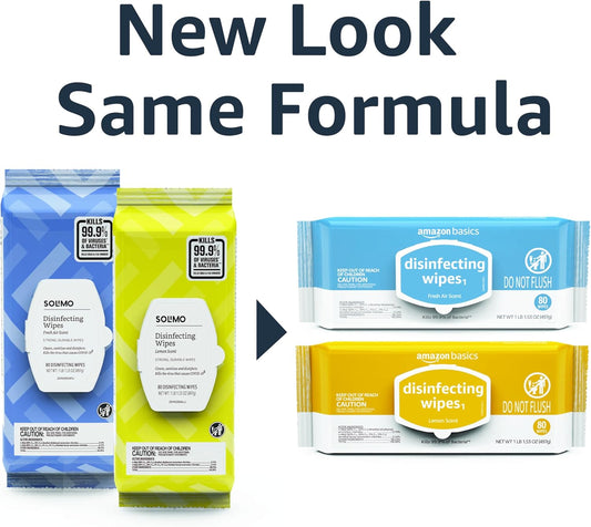 Amazon Basics Disinfecting Wipes, Lemon & Fresh Scent, Sanitizes/Cleans/Disinfects/Deodorizes, 340 Count (12 Packs of 85)