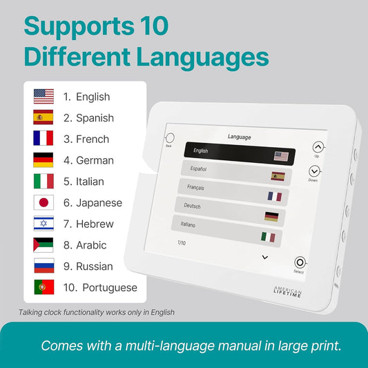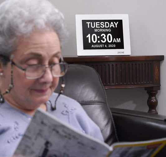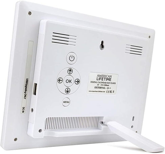 American Lifetime New 2025 Dementia Clock Large Digital Clock for Seniors, Alzeimer Clock Large Display with Custom Alarms, Clock with Day & Date for Elderly, Digital Calendar Premium White Pro