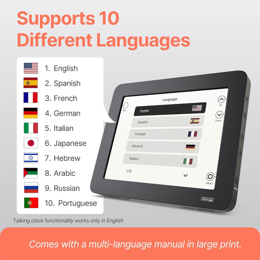 American Lifetime Large Digital Wall Clock for Seniors, Black Polished, 8-Inch High Resolution Display, Easy to Read, Customizable Alarms, Auto-Dimming, Multi-Language Support, Battery Backup