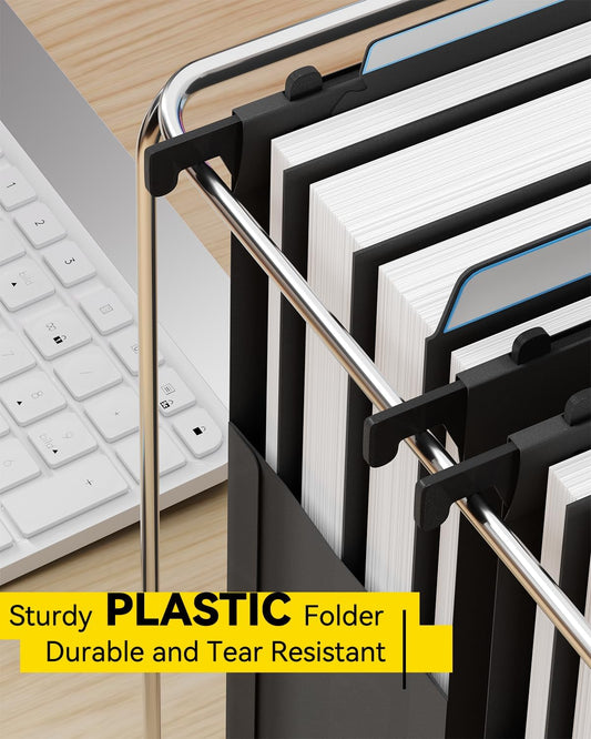 Ansook Plastic High Capacity Hanging File Folders,Heavy Duty 4”Expansion Accordian Pocket,Staggered Tabs with Movable Dividers, Extra Wide,Letter Size,Hanging Organizer for Filing Cabinet,6 Pack,Black