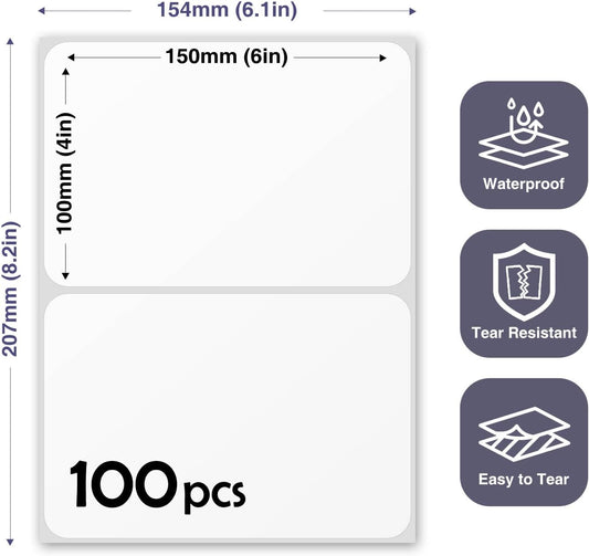 100Pcs Large White Labels for Storage Bins,6x4 Inch Removable Labels,Large Labels for Blank Box,Strong Adhesive Tear Resistant No Residue Blank Labels (White)