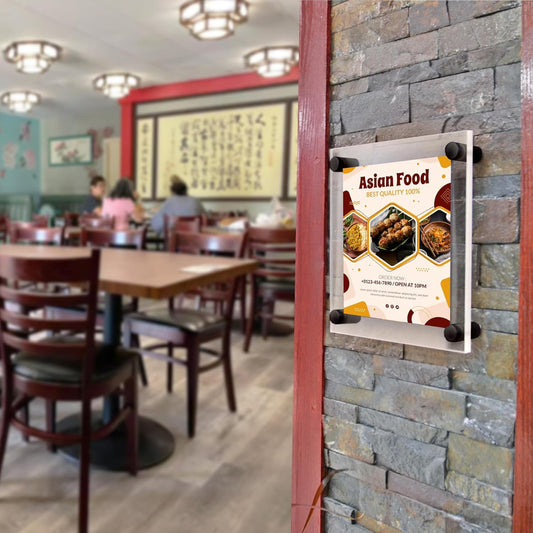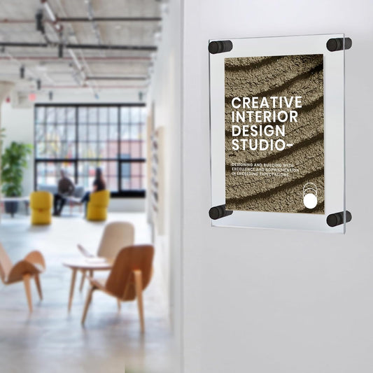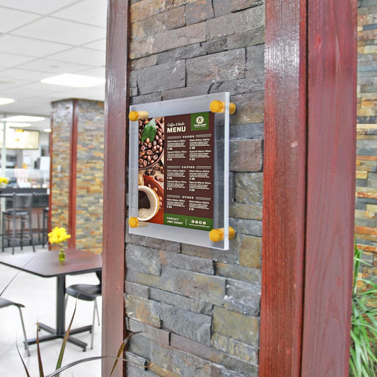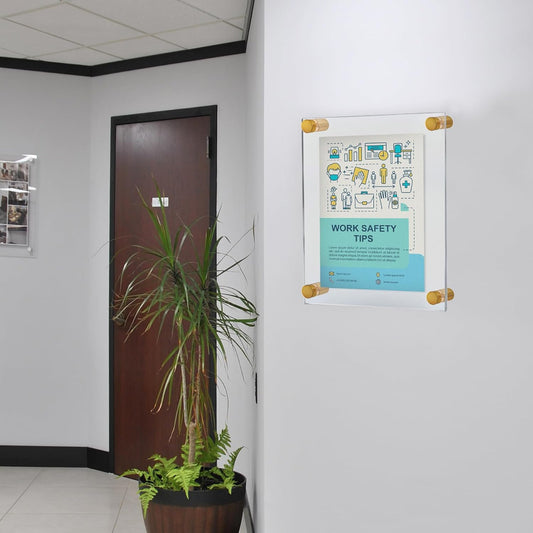 Azar Displays, 105514, Floating Acrylic Wall Frame with Silver Hardware Stand Off Caps, Clear Hanging Photo Frame Display Mount with Frameless Border, Glass-Like Frame for Large Prints, 8.5" x 11"