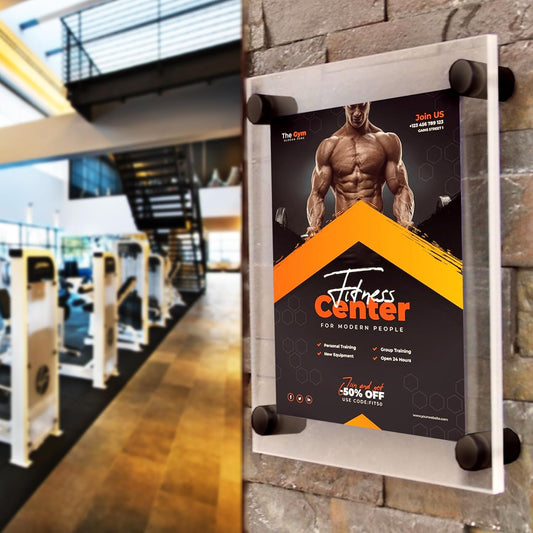 Azar Displays, 105540, Floating Acrylic Wall Frame with Silver Hardware Stand Off Caps, Clear Hanging Photo Frame Display Mount with Frameless Border, Glass-Like Frame for Large Prints, 30" x 40"