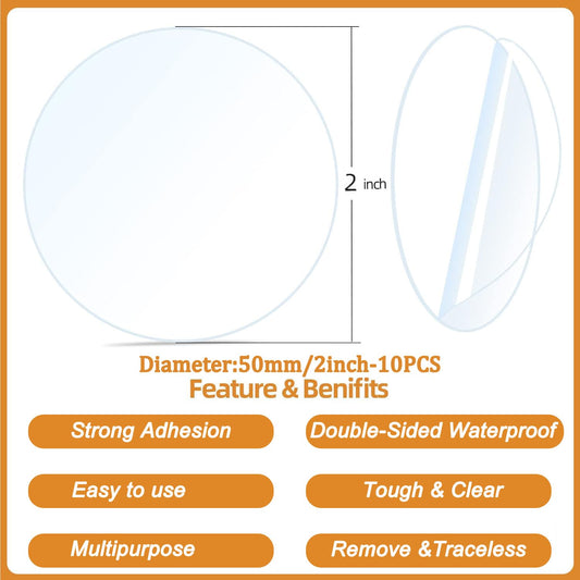 10PCS Heavy Duty Double Sided Adhesive Mounting Circle Tape- Waterproof,Strong Adhesion,Clear, High Strength,No Residue Removability for Hanging,Wall Mounting, Home Decor,Adhesive for Shower