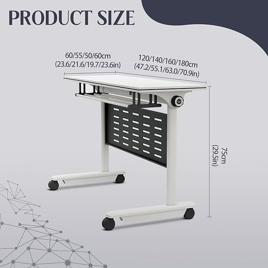 10Pack Folding Conference Room Table, Modern Conference Tables with Silent Wheels, Large Rectangular Mobile Training Tables for Office Classroom, Foldable Modular Seminar Table White (L47.2in)