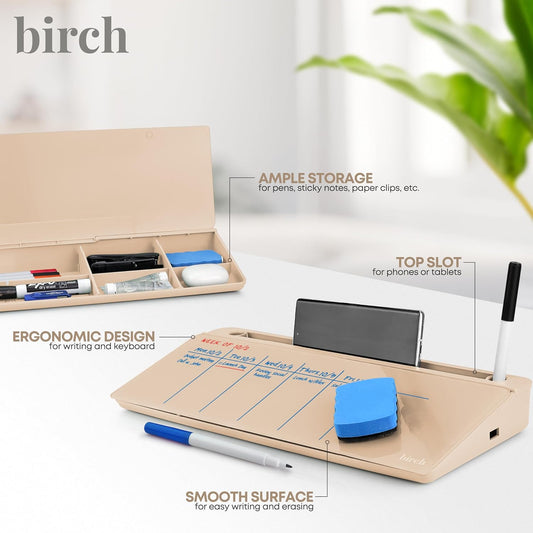 Birch Desktop Whiteboard with Storage & Multiple Marker Surface Desktop Glass Dry Erase Board Desk Top White Board Dry Erase Notepad Desk White Board Tabletop Desk Whiteboard (Sand)