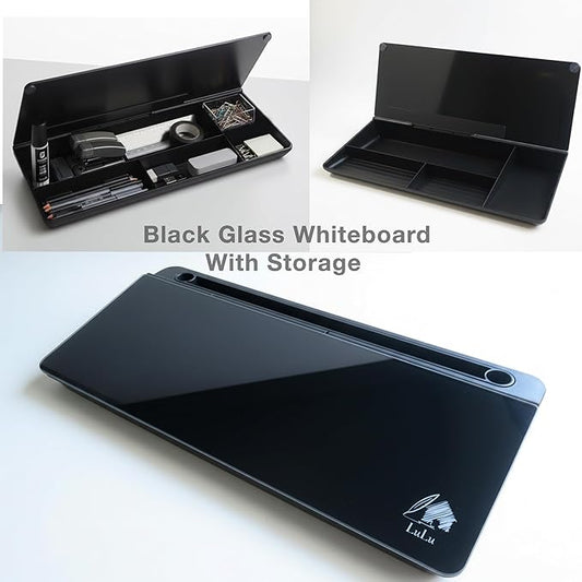 Black Glass Desktop Whiteboard – Modern Dry Erase Board with Storage Drawer for Desk Notes & Organization